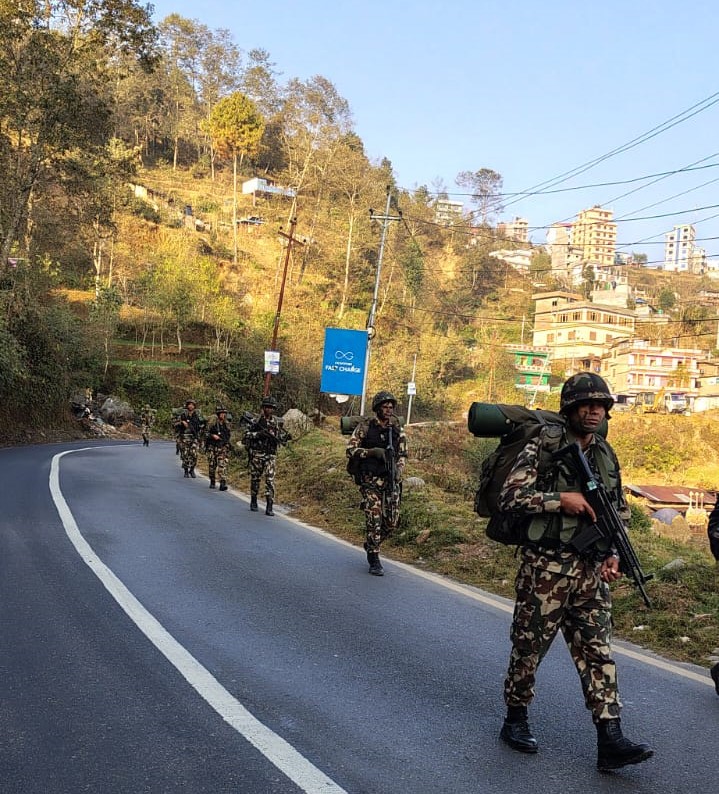 दोलखा/निर्वाचन सुरक्षाको लागि सेना परिचालन गर्ने सरकारको निर्णय अनुसार दोलखामा बुधवारबाट चरिकोट स्थित गरुड दल गणबाट सेना परिचालित भएका छन् ।