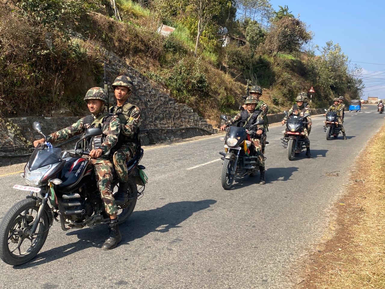 दोलखा/आगामी फागुन– २१ गतेको निर्वाचनलाई लक्षित गर्दै नेपाली सेनाले सोमवारबाट दोलखाको बिभिन्न ठाँउमा मोटरसाईकल पट्रोलिङ सुरु गरेको छ ।