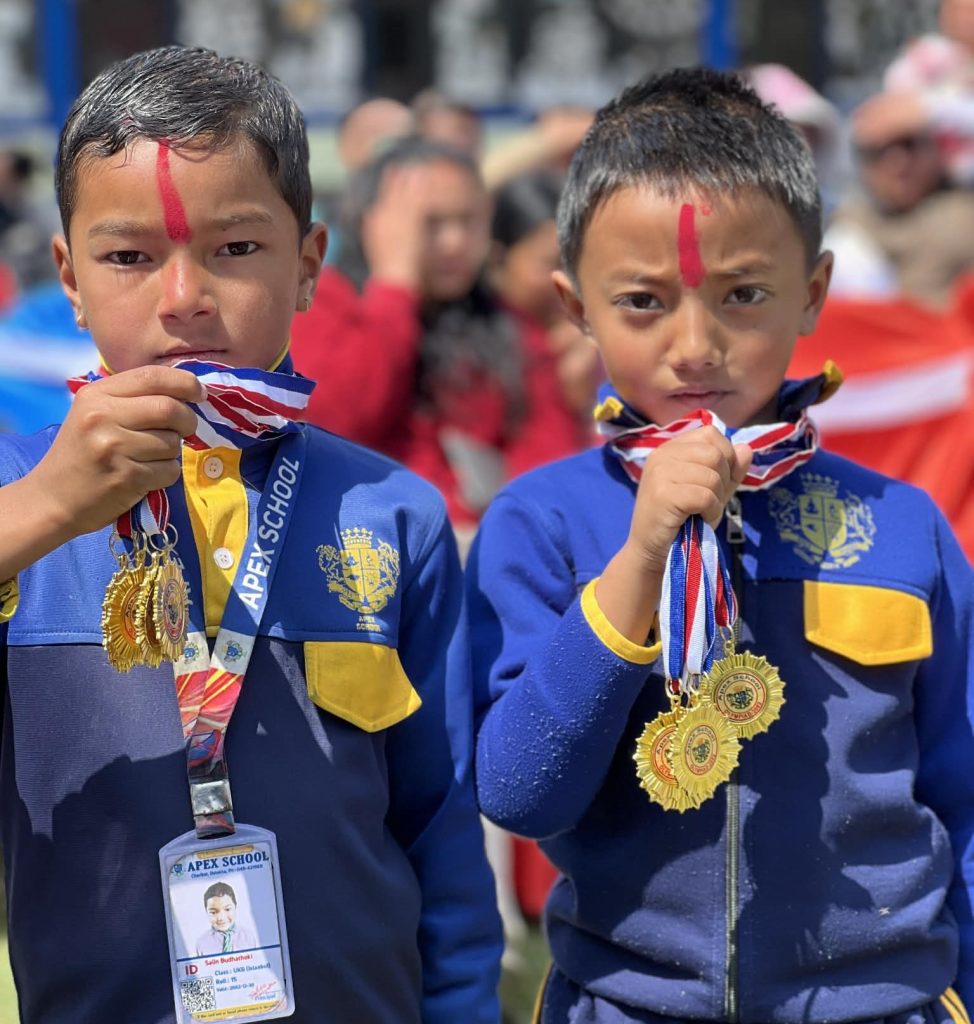 राष्ट्रपति कपमा ऐतिहासिक सफलता: एपेक्स स्कूलले यसै वर्ष खेलकुदको क्षेत्रमा अर्को ठूलो फड्को मारेको छ। भिमेश्वर नगरपालिकाद्वारा आयोजित राष्ट्रपति कपमा पहिलो पटक सहभागी भएको एपेक्सले सानदार प्रदर्शन गर्दै ४ स्वर्ण र १ कास्य पदक सहित समग्र प्रतियोगितामा दोस्रो स्थान हासिल गर्न सफल भएको थियो। “हामी विद्यार्थीको चौतर्फी विकासका लागि केवल किताबी ज्ञानमा मात्र सीमित नभई नयाँ-नयाँ रचनात्मक गतिविधिहरू आयोजना गर्दै आएका छौँ,” प्रिन्सिपल कायस्थले भन्नुभयो। सिनियर तर्फ पुरस्कार वितरण १३ गते हुने: प्रतियोगिता सम्पन्न भए पनि सिनियर तर्फका विजेताहरूको सम्मान भने बाँकी नै रहेको छ।